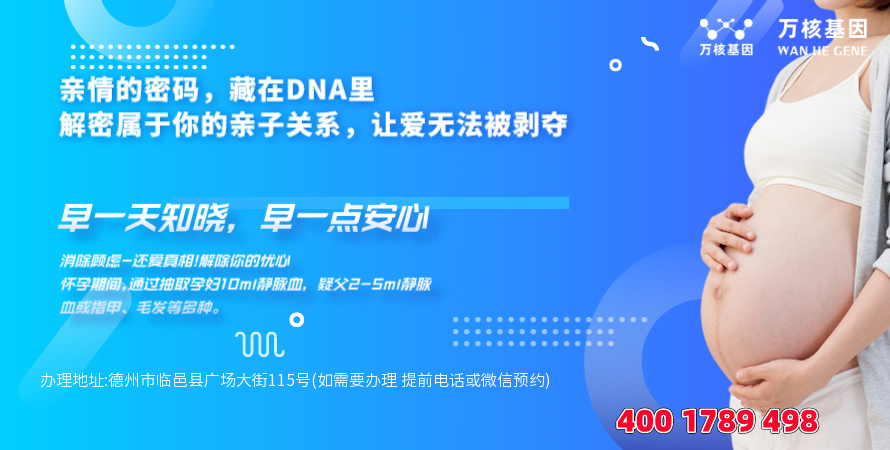 其可以为人们解决疑惑,确认血缘关系,解除心理压力,确保孩子的合法权益,因此临邑地区,越来越多的人开始关注和需要这项服务-临邑无创胎儿亲子鉴定办理地址:德州市临邑县广场大街115号(如需要办理 提前电话或微信预约)-预约电话:4001789498。